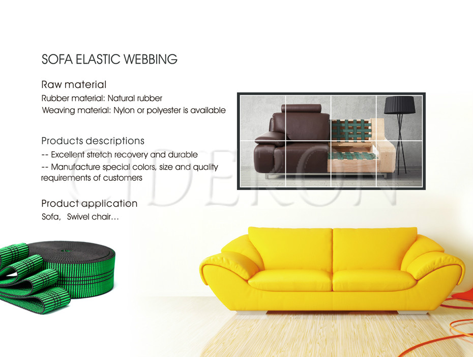 INTRODUCTION: Traditional woven sofa belt is a common sofa elastic belt mainly used for sofa swivel chair and other furniture. It has excellent tensile recovery performance long service life and many colors.