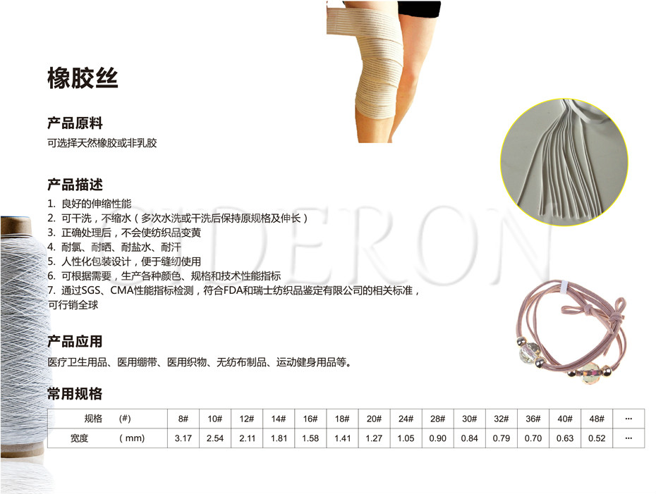 医疗防护产品:医用松紧带、医用橡胶绷带、一次性止血带、橡胶丝、纱包丝是应用在医疗防护作用, 保障医、患人员的医疗健康 查看更多》